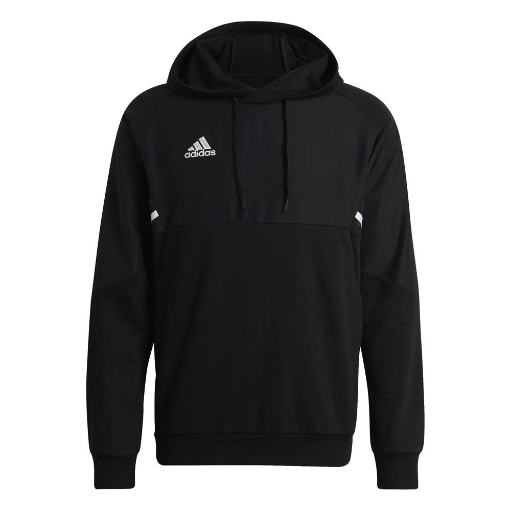Adidas Fußball Condivo 22 Hoodie für Herren. Ein klassischer Fußballhoodie mit recycelten Materialien. Fußballstyle für die Freizeit? Dieser adidas Condivo 22 Hoodie aus weichem French Terry kommt richtig sportlich. Und an kalten Tagen kannst du dir in seiner Kängurutasche die Hände wärmen. Das Produkt hat einen Recycling-Anteil, der aus Textilabfällen, Resten und Haushaltsabfällen hergestellt wird und damit eine bessere Ökobilanz hat als neu produzierte Materialien. Regulär geschnitten. Kapuze mit weitenregulierbarem Kordelzug. Hauptmaterial: 53% Baumwolle/ 36% Polyester/ 11% Viskose (French Terry). Overlay: 100% Polyester (Ripstop). Taschen auf der Vorderseite. Kapuzeneinfassung gerippt. Bündchen und Saum gerippt. Material: Baumwolle, Polyester, Viskose. Farbe: schwarz/weiß.