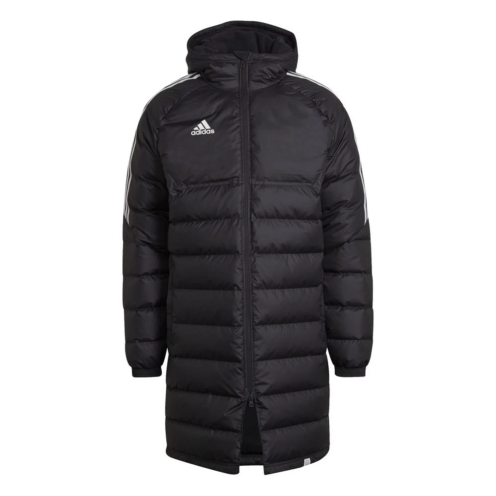 Adidas Fußball Condivo 22 Lange Jacke für Herren. Der Reißverschluss mit Kapuze. Adidas Logo auf der Brust. Seitliche Taschen. Material: 100% Polyester. Farbe: schwarz.