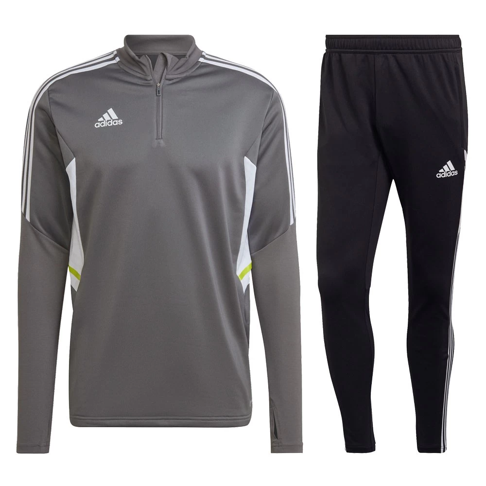 Adidas Fußball Condivo 22 Trainingsanzug Herren. Trainingsanzug bestehend aus Trainingstop sowie schwarze Trainingshose. Top: Dieses Trainingstop ist Fußball durch und durch. Die Condivo-Reihe hat eine stolze Geschichte, die in den Stoff des Spiels eingewebt ist. Dieses adidas Trainingsoberteil zeigt Tornetz-inspirierte Grafiken. French Terry sorgt für Tragekomfort und das AEROREADY-Material leitet Feuchtigkeit ab, damit du trocken bleibst und selbstbewusst auf dem Platz. Schmale Passform. Gerippter Stehkragen mit Reißverschluss. Feuchtigkeitsabsorbierend. AEROREADY. Daumenlöcher an den Bündchen. Hose: Eine Condivo 22 Trainingshose mit recycelten Materialien. Seit Jahrzehnten steht Condivo für stylishe Sportswear. Das zeigt sich auch an dieser adidas Fußballhose. Sie ist aus bequemem Pikee gefertigt und sitzt durch den Kordelzug am Bund sicher. Die Reißverschlüsse im Knöchelbereich sorgen außerdem für einfaches An- und Ausziehen. Und dank der feuchtigkeitsabsorbierenden AEROREADY Technologie genießt du immer ein bequemes, trockenes Tragegefühl. Das Produkt ist Teil unseres Engagements gegen Plastikmüll und besteht zu 100 % aus recycelten Materialien. Schmal geschnitten, mittelhoher Bund. Elastischer Bund mit Kordelzug. Feuchtigkeitsabsorbierende AEROREADY Technologie. In die Seitennaht eingearbeitete Reißverschlusstaschen. Reißverschlüsse im Knöchelbereich. Material: 100% Polyester. Farbe: grau/schwarz/weiß.
