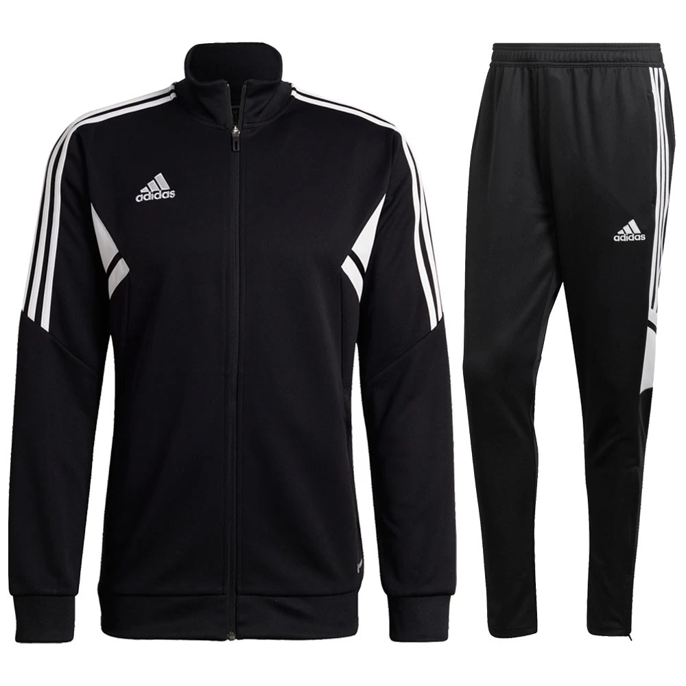 Adidas Fußball Condivo 22 Trainingsanzug Herren. Trainingsanzug bestehend aus Trainingsjacke sowie schwarze Trainingshose. Jacke: Inspiriert vom Spitzenfußball, hilft dir diese adidas Condivo 22 Trainingsanzug mit einer schmalen Passform und sportlichen Details, über die Seitenlinie hinaus zu glänzen. Reißverschlusstaschen halten Wertsachen sicher. AEROREADY-Material absorbiert Feuchtigkeit, damit du auch im Alltag bequem bleibst. Gerippte Bündchen und Saum. Schmale Passform. Durchgehender Reißverschluss mit geripptem Stehkragen. Feuchtigkeitsabsorbierend. AEROREADY. Fronttaschen mit Reißverschluss. Hose: Genau wie deine Vorbilder gibst du auf dem Spielfeld alles. Diese adidas Condivo 22 Trainingshose kommt mit feuchtigkeitsabsorbierender AEROREADY Technologie und gibt dir ein frisches, trockenes Tragegefühl. Die Seitentaschen bieten außerdem Platz für wichtige Kleinigkeiten. Das Produkt ist Teil unseres Engagements gegen Plastikmüll und besteht zu 100 % aus recycelten Materialien. Material: 100% Polyester. Farbe: schwarz/weiß.