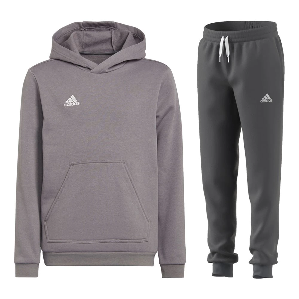 Adidas Fußball Entrada 22 Jogginganzug für Herren. Jogginganzug bestehend aus Sweat Hoodie sowie graue Jogginghose. Hoodie: Ein Fußball Hoodie aus Fleece mit Recyclinganteil. Für dein Team. Für die Umwelt. Die Entrada 22 Range ist vom Amateurfußball inspiriert und liefert dir Pieces für einen professionellen Look. So glänzt du nicht nur mit deinen Skills, sondern auch mit deinem Auftreten. Dieser adidas Hoodie aus weichem Fleece ist superbequem. Er gibt dir vor und nach dem Training ein warmes Tragegefühl. Die funktionale Kapuze und die Kängurutasche zum Wärmen der Hände machen das Design perfekt. Das Produkt hat einen Recycling-Anteil, der aus Textilabfällen, Resten und Haushaltsabfällen hergestellt wird und damit eine bessere Ökobilanz hat als neu produzierte Materialien. Regulär geschnitten. Kapuze mit weitenregulierbarem Kordelzug. Kängurutasche. Bündchen und Saum gerippt. Teil der Better Cotton Initiative. Hose: Eine Jogginghose aus Fleece mit recycelten Materialien. Für dein Team. Für die Umwelt. Die Entrada 22 Range ist vom Amateurfußball inspiriert und liefert dir Pieces für einen professionellen Look. So glänzt du nicht nur mit deinen Skills, sondern auch mit deinem Auftreten. Diese adidas Jogginghose gibt dir auf dem Weg zum Training mit weichem Fleece ein warmes, bequemes Tragegefühl. Die schmal zulaufende Beinform und gerippten Bündchen verpassen ihr einen cleanen Look und sorgen für ungestörte Beinarbeit. Das Produkt hat einen Recycling-Anteil, der aus Textilabfällen, Resten und Haushaltsabfällen hergestellt wird und damit eine bessere Ökobilanz hat als neu produzierte Materialien. Regulär geschnitten, mittelhoher Bund. Elastischer Bund mit Kordelzug. In die Seitennaht eingearbeitete Taschen. Rippbündchen. Fleece. Teil der Better Cotton Initiative. Material: 70% Baumwolle, 30% Polyester. Farbe: grau/weiß.