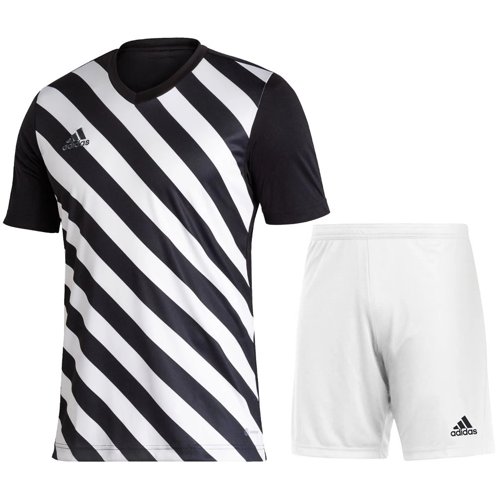 Adidas Fußball Entrada 22 Trikotset Trikot Shorts für Herren. Trikotset bestehend aus Trikot sowie weiße Shorts. Tikot: Ein schräg gestreiftes Fußballtrikot mit recycelten Materialien. Für dein Team. Für die Umwelt. Dieses adidas Trikot ist Teil der Entrada 22 Kollektion und verpasst klassischem Fußballstyle ein Update. Warum immer horizontal oder vertikal? Dieses Design setzt mit schräg verlaufenden Streifen auf Abwechslung. Außerdem sorgt die feuchtigkeitsabsorbierende AEROREADY Technologie für ein trockenes Tragegefühl im Spiel und beim Training. Das Produkt ist Teil unseres Engagements gegen Plastikmüll und besteht zu 100 % aus recycelten Materialien. Schmal geschnitten. V-Ausschnitt. Feuchtigkeitsabsorbierende AEROREADY Technologie. Interlock. Shorts: Feuchtigkeitsabsorbierende Fußballshorts mit recycelten Materialien. Mit diesen adidas Entrada 22 Fußballshorts bist du immer ready. Ihr cleanes, klassisches Design ist mit feuchtigkeitsabsorbierender AEROREADY Technologie für ein trockenes und frisches Tragegefühl ausgestattet. Der elastische Bund mit weitenregulierbarem Kordelzug sorgt außerdem für einen sicheren Sitz. Das Produkt ist Teil unseres Engagements gegen Plastikmüll und besteht zu 100 % aus recycelten Materialien. Regulär geschnitten. Elastischer Bund mit Kordelzug. Feuchtigkeitsabsorbierende AEROREADY Technologie. Interlock. Material: 100% Polyester. Farbe: schwarz/weiß.