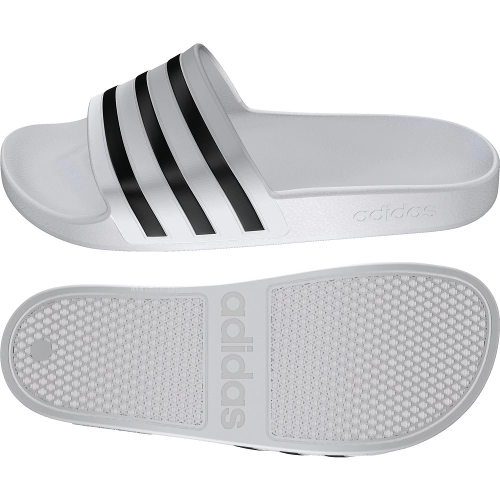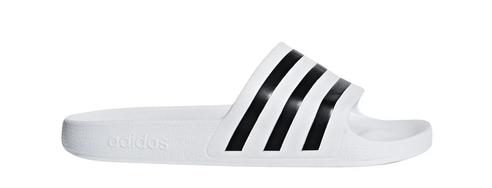Adidas Fußball Adilette Aqua Slipper Badelatschen für Herren. Dieser Slipper ist perfekt fürs Schwimmbad. Er setzt auf stylishen Minimalismus, während die 3-Streifen für den adidas Signature-Style sorgen. Perfekt wird das Ganze durch die weiche Dämpfung, mit der es müde Füße nach dem Workout superbequem haben. Regulär geschnitten. Slip-On-Design. Einteiliger, vorgeformter EVA-Riemen. EVA-Außensohle. Weiches Cloudfoam Fußbett. Angenehm leichter Tragekomfort, schnell trocknendes Material. Material: Synthetics. Farbe: weiß/schwarz.