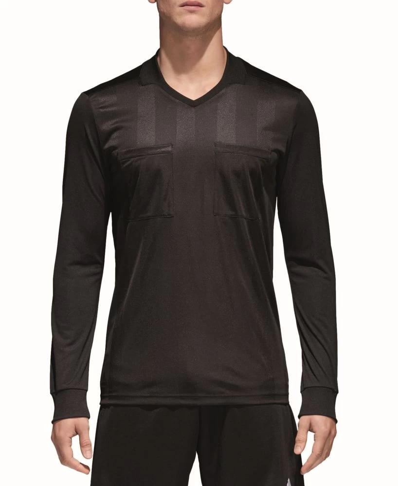 Adidas Fußball Referee 18 Herren Schiedsrichtertrikot, langarm. Leitet den Schweiß weg von deiner Haut, damit du auf jedem Schritt deines Weges trocken bleibst. Schwitze, aber mach dir nichts draus. Aufgesetzte Brusttaschen. Gerippter V-Ausschnitt. Besonders verarbeitetes Material für einen perfekten Sitz auch bei Bewegungen. Ton in Ton gehaltene Streifen, adidas Logo auf der Brust. Material: 100% Polyester. Farbe: schwarz.