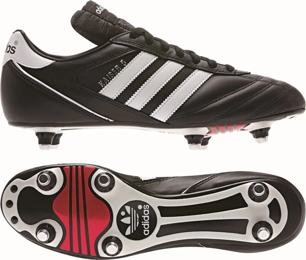 Adidas Kaiser Five Cup Fußballschuhe Stollen Schuhe Herren. Wenn dieser Schuh sprechen könnte … Der Urvater aller Fußballschuhe für Herren mit Schraubstollen hat uns die unvergesslichsten Momente in der Geschichte des Fußballs beschert. Und mit dem Full-Grain-Oberleder und der Laufsohle mit Schraubstollen wird die Erfolgskurve auch in den nächsten Jahren garantiert nicht abfallen. Obermaterial aus Full-Grain-Leder für Komfort und weiches Tragegefühl. Weiches, strapazierfähiges Synthetikfutter für ausgezeichneten Tragekomfort. Geprägte EVA-Einlegesohle für Komfort und Leichtigkeit. TPU-Laufsohle mit austauschbaren Schraubstollen sorgen für Griffigkeit auf weichen Naturböden. Material: Leder. Farbe: schwarz/weiß/rot.