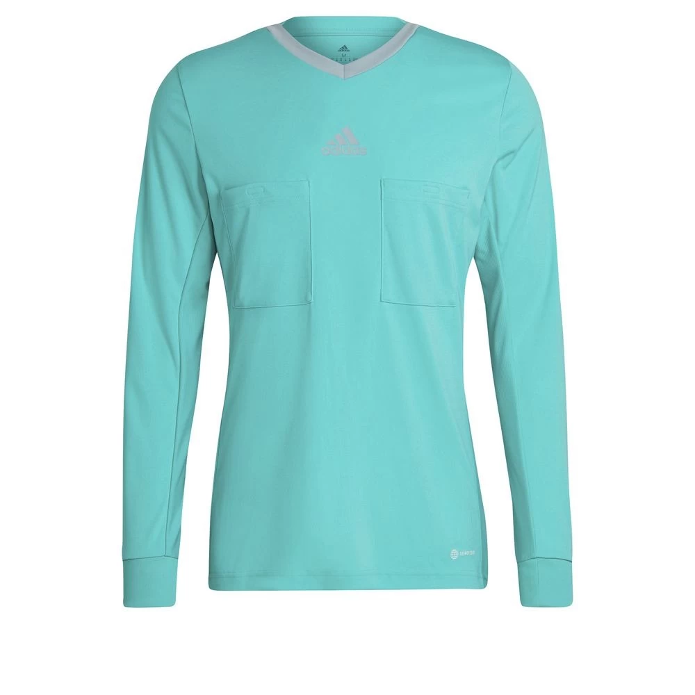 Adidas Fußball Schiedsrichter Langarm Trikot FIFA Referee 22 für Herren. Spezielle Unterarm-Schnittmusterkonstruktion mit dehnbarem Stoffeinsatz ermöglicht optimale Bewegungsfreiheit der Arme, um sicherzustellen, dass das Trikot während eines Spiels nicht verrutscht. 2 Brusttaschen links und rechts auf der Vorderseite zum Verstauen der Notiz- und Disziplinarkarten. Slim Fit. Langarm. Material: 100% Polyester. Farbe: mint.
