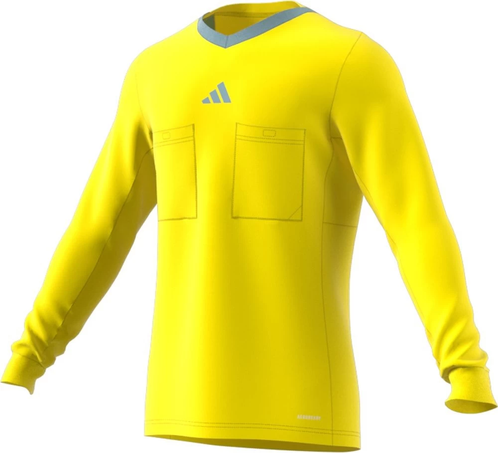 Adidas Fußball Schiedsrichter Referee 23 Langarm Trikot für Herren. Schiedsrichter Trikot. Die feuchtigkeitsabsorbierende AEROREADY Technologie sorgt zudem auch bei intensiven Matches für ein angenehm trockenes Tragegefühl. 2 Brusttaschen links und rechts auf der Vorderseite zum Verstauen der Notiz- und Disziplinarkarten. Slim Fit. Material: 100% Polyester. Farbe: gelb.