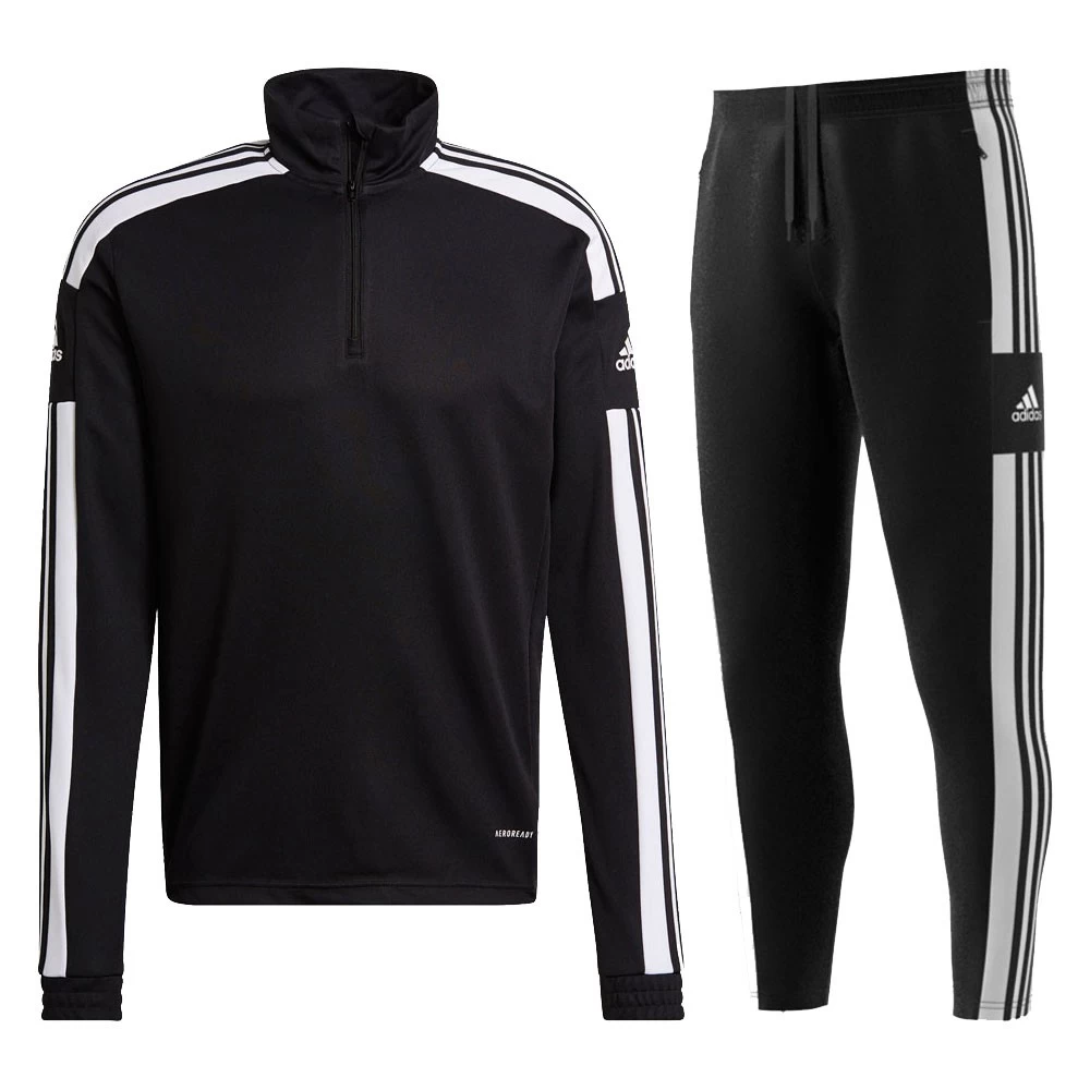 Adidas Fußball Squadra 21 Trainingsanzug für Herren. Trainingsanzug bestehend aus Training Top sowie Trainingshose. Training Top: Du trainierst nicht nur für dich selbst. Du trainierst auch für dein Team. Deshalb hat adidas die Squadra 21 Kollektion designt, mit der du beim Training punkten kannst. Dieses Fußballoberteil sorgt mit AEROREADY für ein angenehm trockenes Tragegefühl. Dank seinem cleanen Design kannst du Mannschaftsdetails ganz einfach hinzufügen. Feuchtigkeitsabsorbierend. Primegreen. Reißverschluss bis zur Brust; Stehkragen. Reißverschlusstaschen auf der Vorderseite. Elastische Bündchen. Material: 100% recycelter Polyester (Doppelstrick). Farbe: schwarz/weiß. Trainingshose: Diese Fußballhose kommt mit feuchtigkeitsabsorbierender AEROREADY Technologie für ein warmes und trockenes Tragegefühl. Außerdem ermöglicht die schmale Passform eine ungestörte Beinarbeit. Primegreen. Elastischer Bund mit Kordelzug. Reißverschlusstaschen auf der Vorderseite. Rippdetails im Wadenbereich; Reißverschlüsse im Knöchelbereich. Material: 100% recycelter Polyester (Doppelstrick). Farbe: schwarz/weiß.
