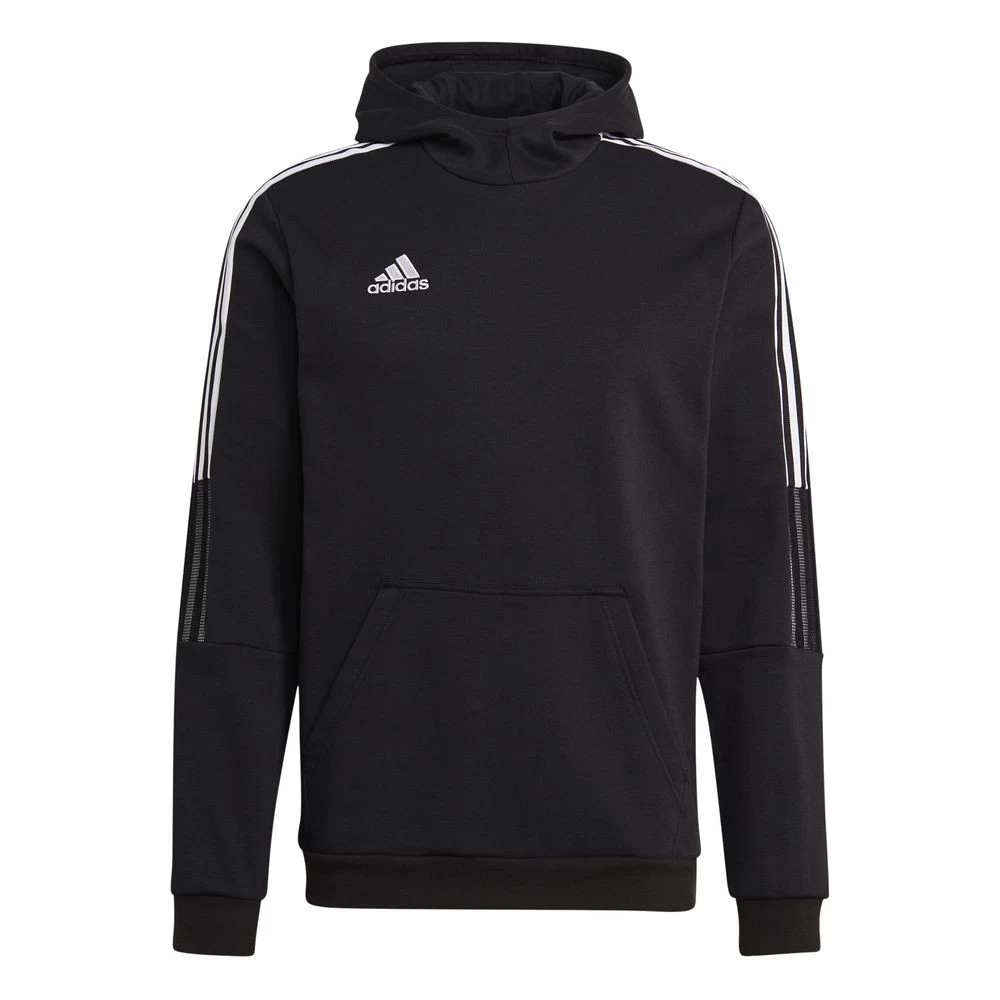 Adidas Fußball Tiro 21 Sweat Hoodie Herren. Jetzt sind Cool-down und Relaxen angesagt. Dieser adidas Hoodie ist ideal für die ruhigeren Momente des Fußballs, z. B. beim Dehnen vor dem Spiel oder auf dem Heimweg nach dem Training. Das Design aus Baumwollmix fühlt sich angenehm weich an. Die große Kapuze ist besonders bequem. Dreiteilige Kapuze. Kängurutaschen. Bündchen und Saum gerippt. Material: 70% Baumwolle, 30% recycelter Polyester (Fleece). Farbe: schwarz/weiß.