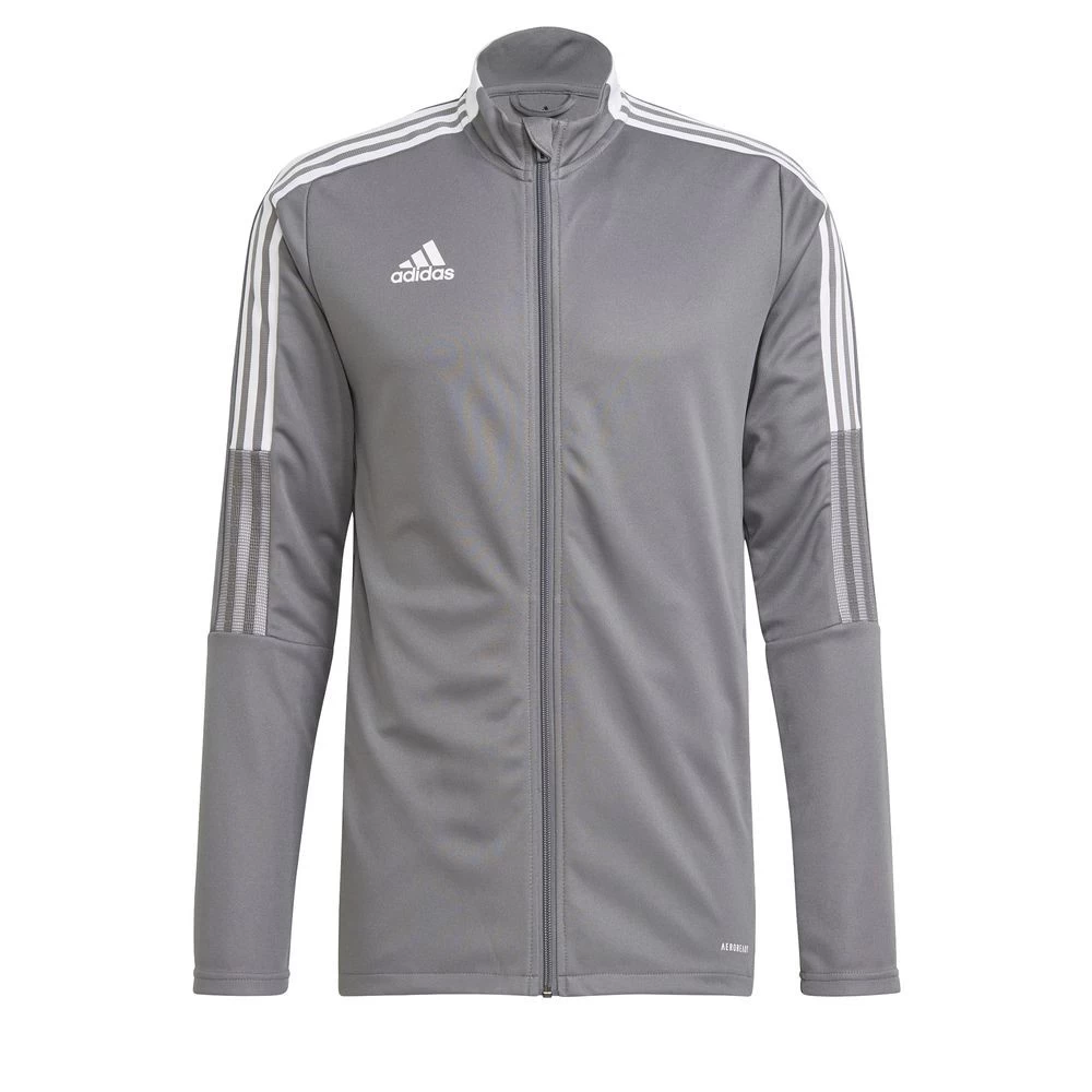 Adidas Fußball Tiro 21 Trainingsjacke Kinder. Zu gut, um auf dem Platz zu bleiben. Die adidas Tiro Jacke war ursprünglich eine Fußballtrainingsjacke. Mittlerweile ist sie aber auch ein absolutes Must-have in Sachen Streetwear. Von der feuchtigkeitsabsorbierenden AEROREADY Technologie bis hin zu den Reißverschlusstaschen – die Details sind nicht nur praktisch, sondern auch stylish. Primegreen. Durchgehender Reißverschluss; Stehkragen. Reißverschlusstaschen auf der Vorderseite. Material: 100% recycelter Polyester (Doppelstrick). Farbe: grau/weiß.