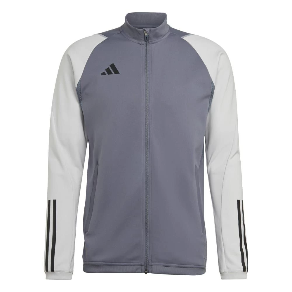 Adidas Fußball Tiro 23 Competition Trainingsjacke für Herren. Mit dieser adidas Fußballjacke mit durchgehendem Reißverschluss bist du bereit fürs Training. Sie ist schmal geschnitten und aus besonders stretchigem Material für optimale Bewegungsfreiheit. Die zweifarbigen Mesh-Einsätze an den Seiten erhöhen die Atmungsaktivität, damit du es beim Training bequem hast. Außerdem garantiert die feuchtigkeitsabsorbierende AEROREADY Technologie trockenen Komfort. Eine stretchige Trainingsjacke aus recycelten Materialien. Schmal geschnitten. Durchgehender Reißverschluss. Stehkragen. Besonders stretchiges Material. Feuchtigkeitsabsorbierende AEROREADY Technologie. Reißverschlusstaschen auf der Vorderseite. Material: 100% Polyester. Farbe: grau/schwarz.