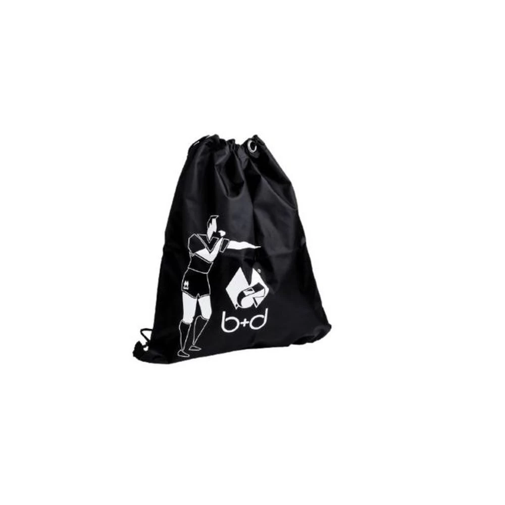 B+D Fußball Schiedsrichter Wäschebeutel b+d Laundry Bag. Endlich Schluss mit dem Durcheinander in der Sporttasche. Der gummierte Polyamid-Beutel für Ihre verschmutzte Sportbekleidung sorgt nun für Ordnung und Sauberkeit. Feuchtigkeitsundurchlässig und strapazierbar, solide verarbeitet mit Schnürzug, auch zum Umhängen, mit Schiedsrichter-Logo. Der optimale Schmutzwäschebeutel! Maße: H 46 x B 37 cm. Material: Polyamid. Farbe: schwarz/weiß.