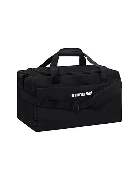 Erima Team Sporttasche. Zeitlos & praktisch: der perfekte Begleiter zum Sport. Optimale Konstruktion für größtmöglichen Stauraum. Seitentasche mit integriertem Nassfach und Belüftung. Frontfach mit Reißverschluss. Verstellbarer Schultergurt. Optimale Veredelungsmöglichkeit. S: Maße (L x B x H) 40x23x27 cm. M: Maße (L x B x H) 50x30x30 cm. L: Maße (L x B x H) 65x31x32 cm. S: Volumen ca. 25 Liter. M: Volumen ca. 45 Liter. L: Volumen ca. 65 Liter. Material: 100% 600D Polyester. Farbe: schwarz.