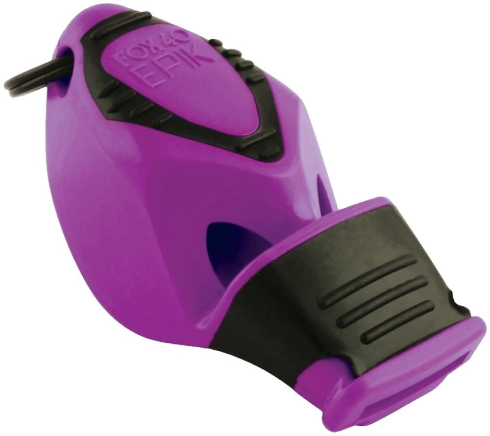 Fox 40 Fußball Schiedsrichter Pfeife Fox 40 Epik CMG. Schwarzes, integriertes Cushioned Mouth Grip (CMG®)-Mundstück. Integrierte Griff-Rippen entlang der oberen Fläche der Pfeife bieten einen zusätzlichen Halt. Neu entwickelte, ergonomische Form passt noch besser in die Hand. Ring im matt-schwarzem Zink–Finish. Bis zu einer Entfernung von 1,6 km gut hörbar. 3-Kammer-Kugellos (Schallleistung ca 115 dB). Material: Kunstoff. Farbe: lila.