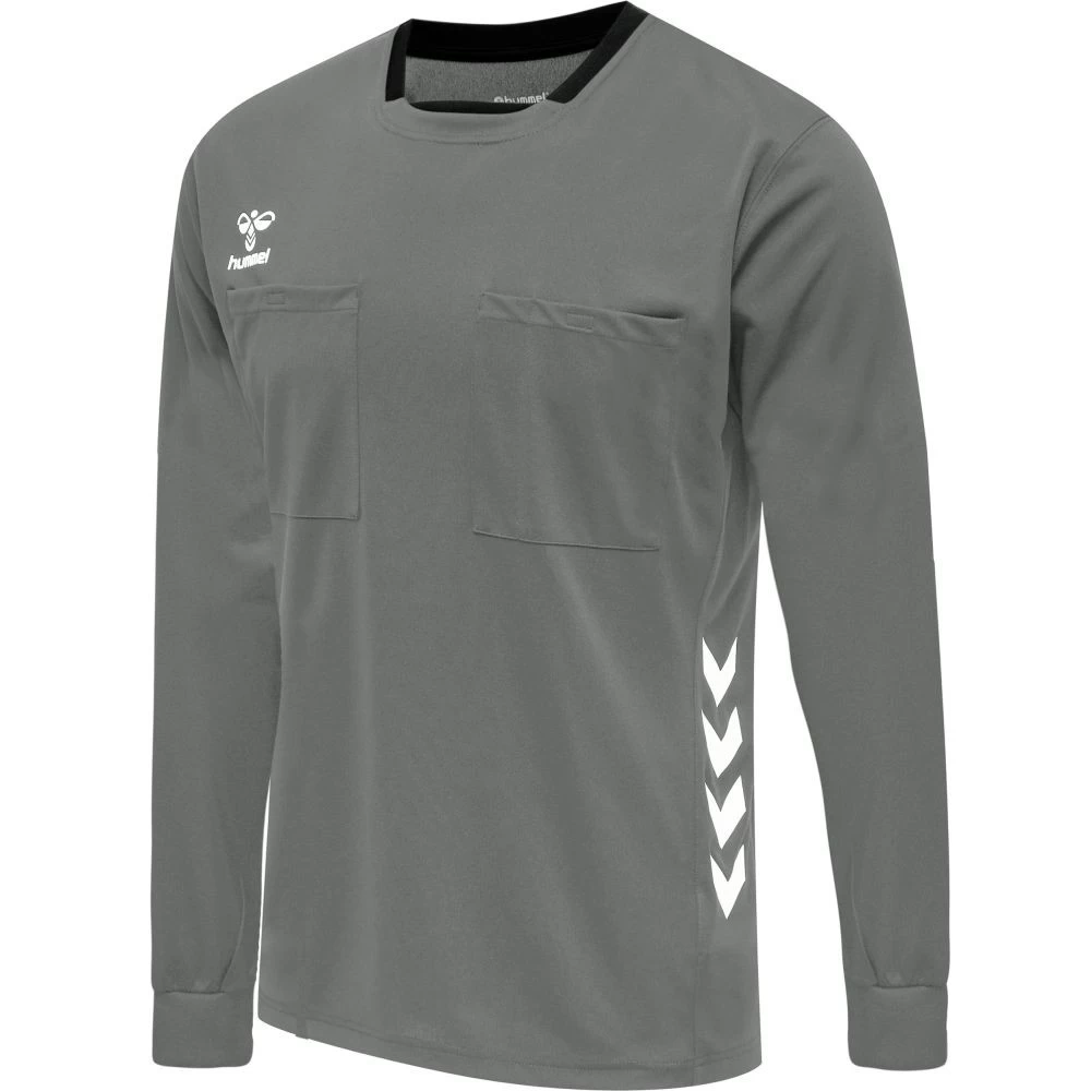 Hummel Fußball Schiedsrichter Chevron Trikot Langarm für Herren. Schiedsrichter-Langarmtrikot aus Jerseystof. Brusttasche mit Klettverschluss. Aufgedruckte Winkel und hummel-Logo. Material: 100% Polyester. Farbe: grau.