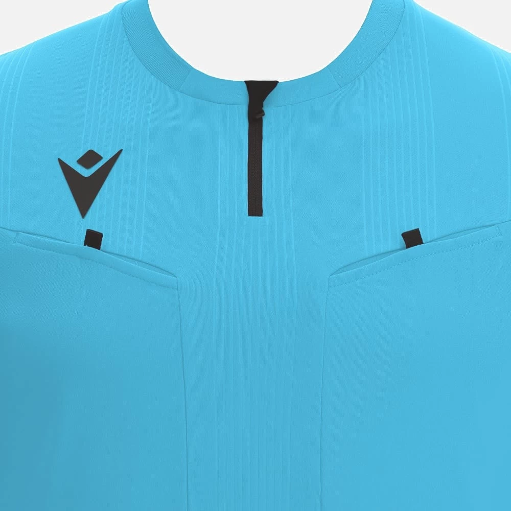 Macron Fußball Dienst Schiedsrichter Trikot Kurzarm für Herren. Schiedsrichtertrikot aus Eco-Softlock aus recyceltem 100% PET-Polyester. Rundhalsausschnitt aus Strick und umgekehrter Viertelreißverschluss aus Nylon mit selbstsperrendem Schieber und Klemmschutz aus Stoff mit offenen Schnittkanten. Rückseite aus Eco-Micromesh für mehr Leichtigkeit und Atmungsaktivität. Zwei ergonomisch geformte Brusttaschen mit Klettverschluss, mit denen die Karten sicher aufbewahrt und schnell gezückt sind. Geprägte Textur mit Streifenmuster auf der Vorderseite speziell für UEFA-Schiedsrichter ’21. 1/4 Reißverschluss. Rundhalsausschnitt aus Strick. Eco-mesh-einsätze. Umgekehrter Nylon-Reißverschluss. Material: 100% Polyester. Farbe: fluor blau/schwarz.