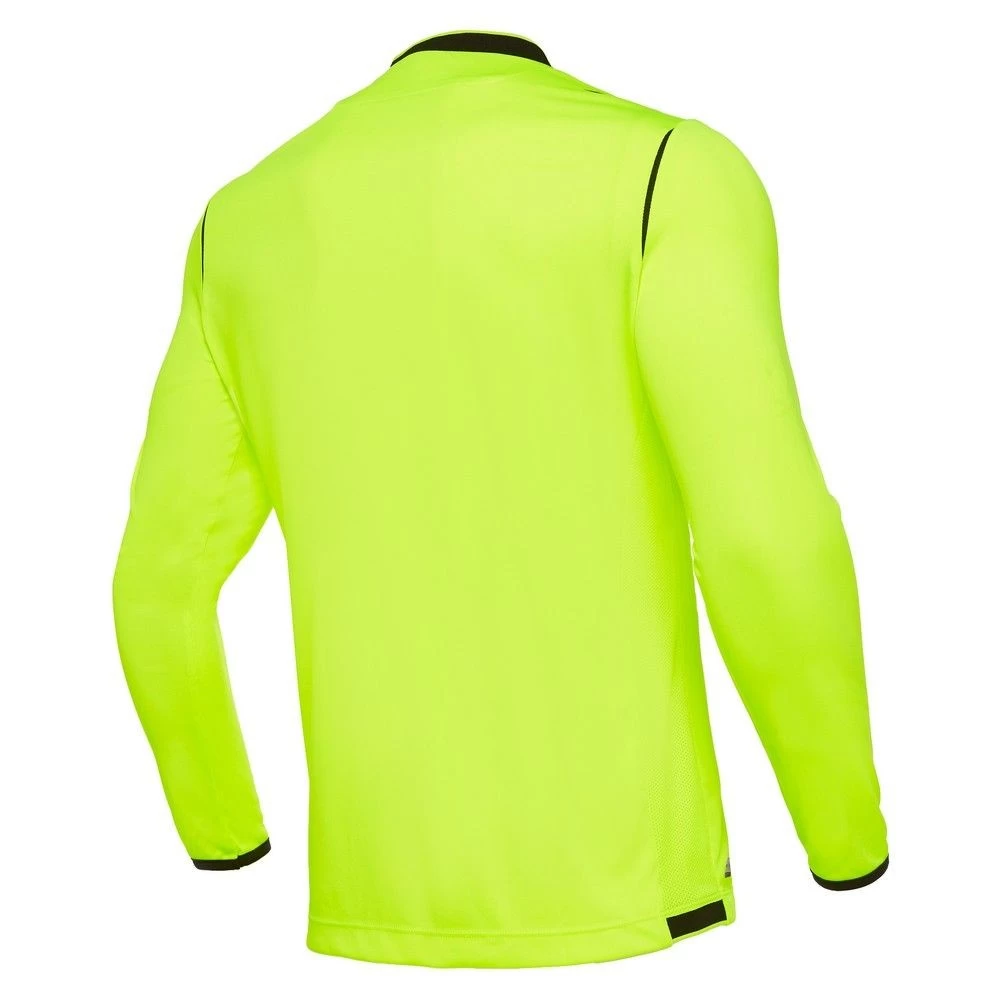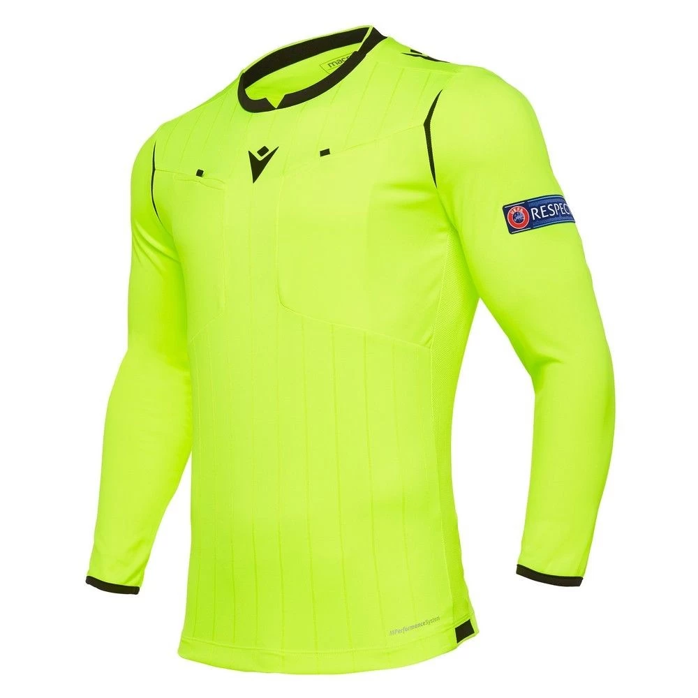 Macron Fußball 1/1-Arm-Shirt UEFA Referee 19 für Herren. Eine überzeugende Mischung aus Design und Sorgfalt im Detail prägt das neue Schiedsrichtertrikot von Macron für die UEFA. Außer den Mesh-Einsätzen besteht jeder Teil des Trikots aus verschiedenen Geweben, so dass ein vielfältiges Design entsteht: weiches Jacquard-Gewebe im Nadelstreifenmuster vorn in der Mitte, Softlock an den Ärmeln und den vorderen Taschen, Mikromesh für die Rückseite. Die 2 großen Vordertaschen haben einen Klettverschluss. Der Halsausschnitt und die Ärmelbündchen sind gerippt. Auf der linken Seite fällt die Aufschrift ‚Respect‘ auf, der Slogan der UEFA-Kampagne gegen Rassendiskrimination. Material: 100% Polyester. Farbe: neongelb/schwarz. 58014338