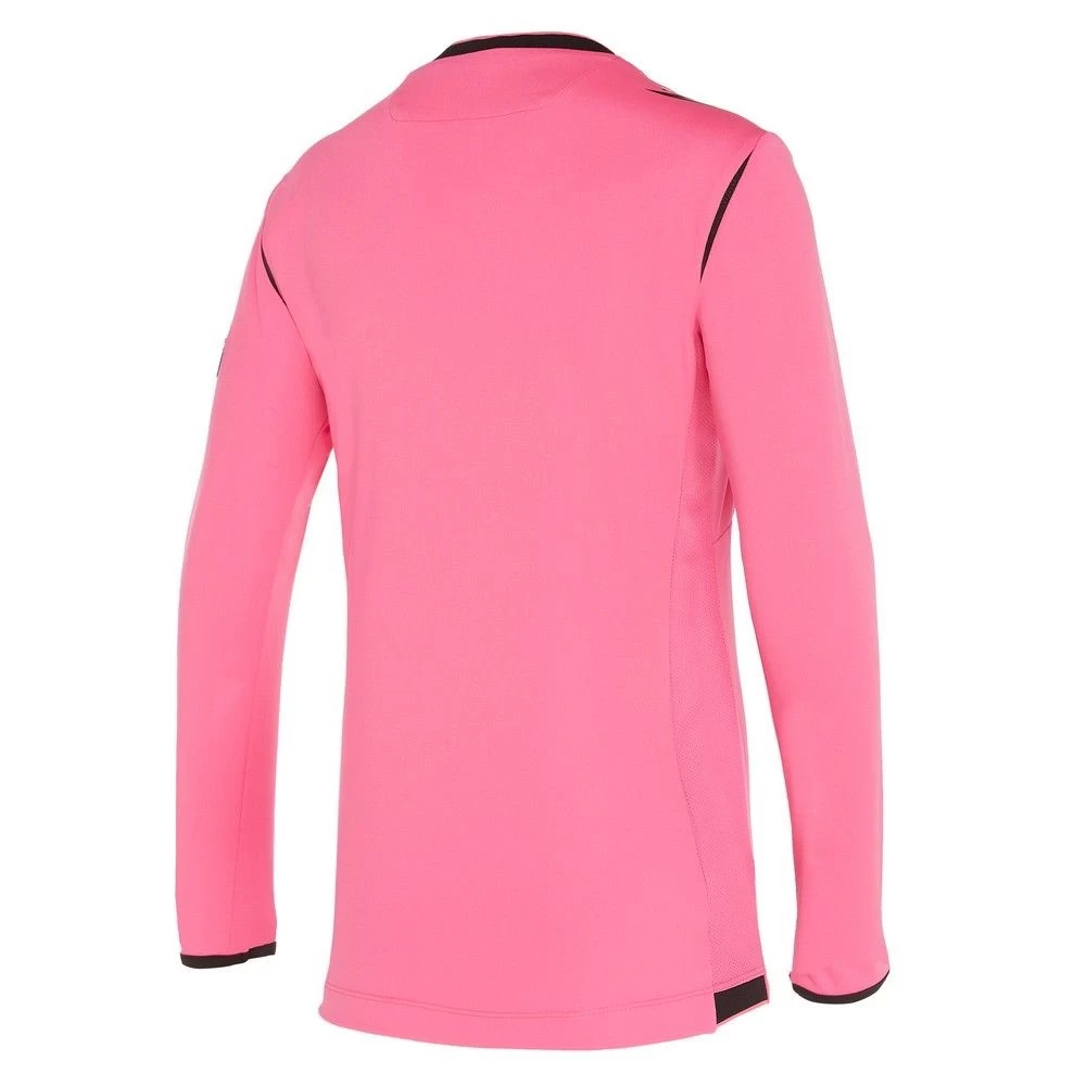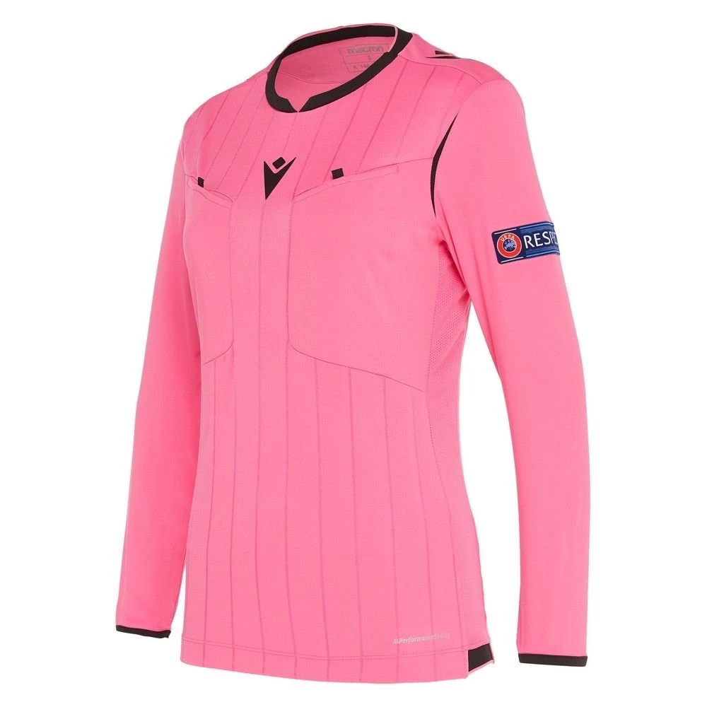 Macron Fußball 1/1-Shirt UEFA Referee 19 für Damen. Eine überzeugende Mischung aus Design und Sorgfalt im Detail prägt das neue Damen-Schiedsrichtertrikot von Macron für die UEFA. Außer den Mesh-Einsätzen besteht jeder Teil des Trikots aus verschiedenen Geweben, so dass ein vielfältiges Design entsteht: weiches Jacquard-Gewebe im Nadelstreifenmuster vorn in der Mitte, Softlock an den Ärmeln und den vorderen Taschen, Mikromesh für die Rückseite. Die 2 großen Vordertaschen haben einen Klettverschluss. Der Halsausschnitt und die Ärmelbündchen sind gerippt. Auf der linken Seite fällt die Aufschrift ‚Respect‘ auf, der Slogan der UEFA-Kampagne gegen Rassendiskrimination. Material: 100% Polyester. Farbe: neonpink/schwarz.