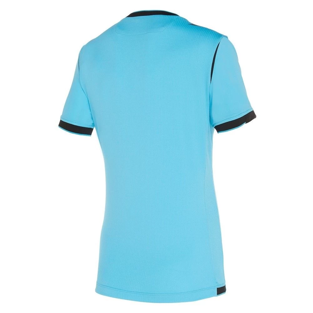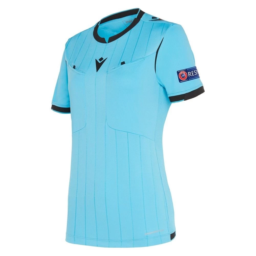 Macron Fußball 1/2-Shirt UEFA Referee 19 für Damen. Eine überzeugende Mischung aus Design und Sorgfalt im Detail prägt das neue Damen-Schiedsrichtertrikot von Macron für die UEFA. Außer den Mesh-Einsätzen besteht jeder Teil des Trikots aus verschiedenen Geweben, so dass ein vielfältiges Design entsteht: weiches Jacquard-Gewebe im Nadelstreifenmuster vorn in der Mitte, Softlock an den Ärmeln und den vorderen Taschen, Mikromesh für die Rückseite. Die 2 großen Vordertaschen haben einen Klettverschluss. Der Halsausschnitt und die Ärmelbündchen sind gerippt. Auf der linken Seite fällt die Aufschrift ‚Respect‘ auf, der Slogan der UEFA-Kampagne gegen Rassendiskrimination. Material: 100% Polyester. Farbe: hellblau/schwarz.