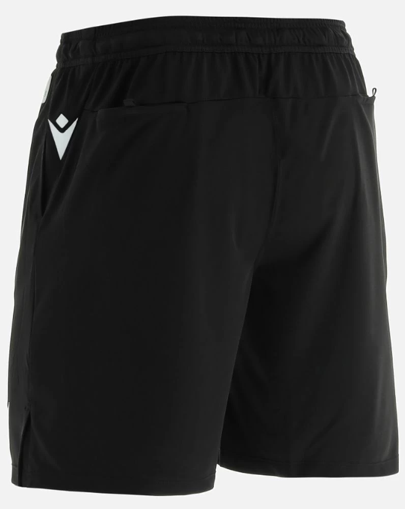 Macron Fußball Schiedsrichter Shorts UEFA 2021 für Herren. Die von Macron für die UEFA realisierten Schiedsrichter-Shorts sind mit praktischen Taschen auf der Rückseite und an den Seiten sowie einem flachen Kordelzug in der Taille ausgestattet. Flacher Tunnelzug. Taschen mit Klettverschluss. Material: 100% Polyester. Farbe: schwarz.