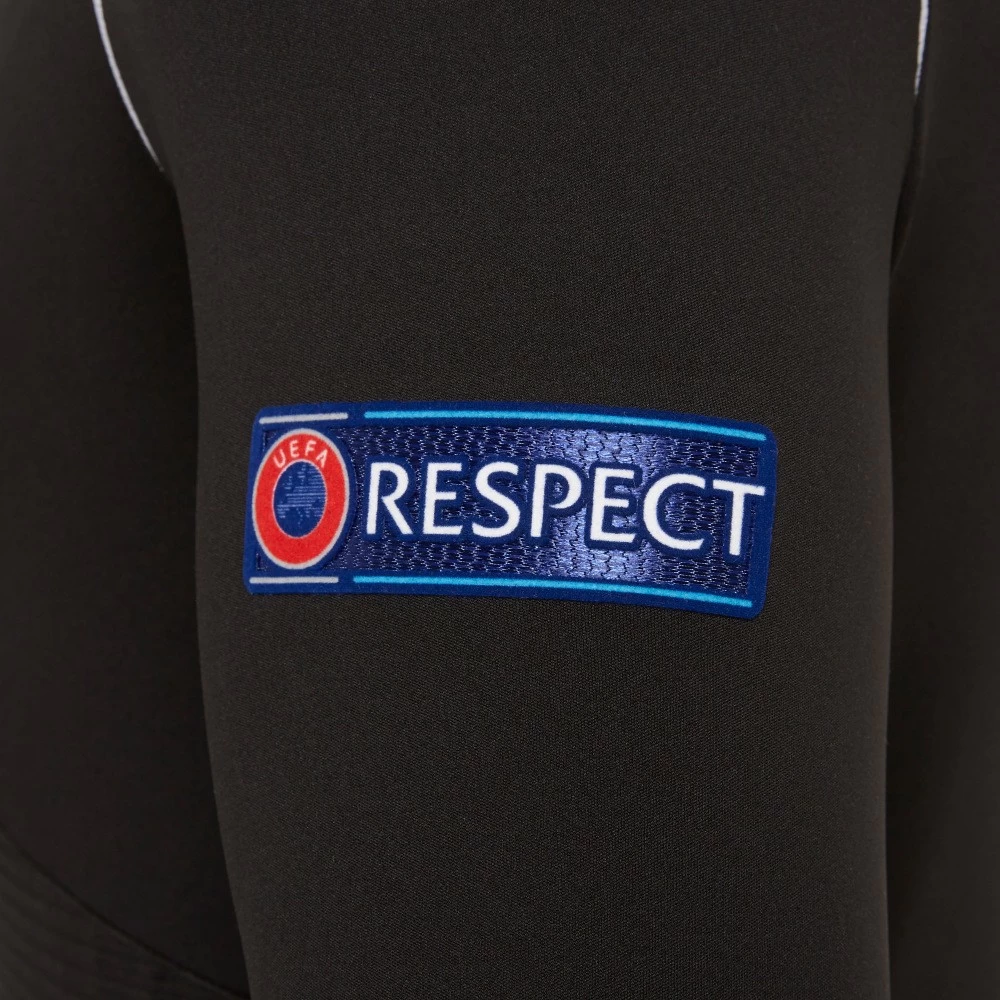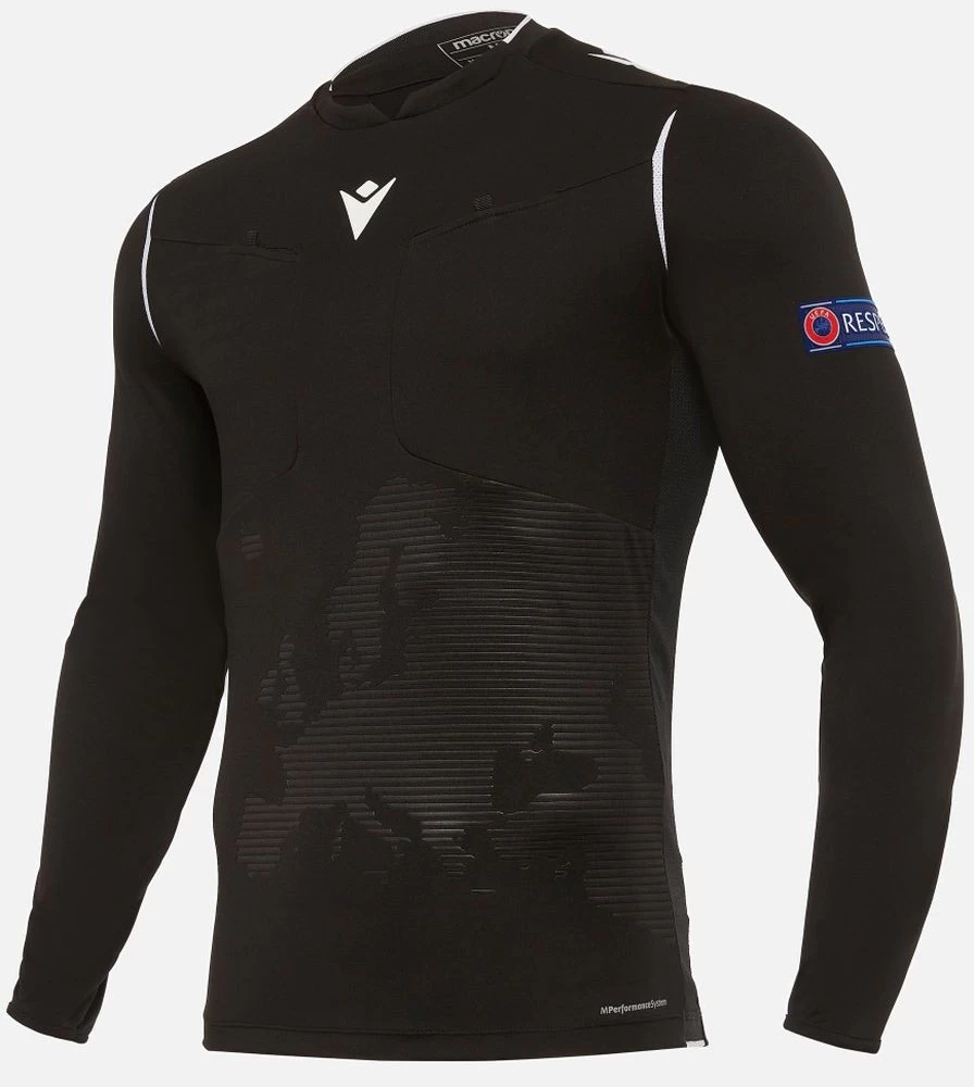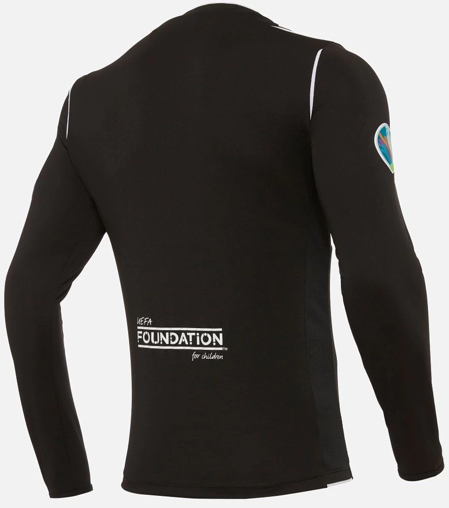 Macron Fußball Schiedsrichter langarm Trikot UEFA Euro 2020 für Herren. Eine überzeugende Mischung aus Design und Sorgfalt im Detail prägt das neue Schiedsrichtertrikot von Macron für die UEFA. Außer den Mesh-Einsätzen besteht jeder Teil des Trikots aus verschiedenen Geweben, so dass ein vielfältiges Design entsteht: weiches Jacquard-Gewebe im Nadelstreifenmuster vorn in der Mitte, Softlock an den Ärmeln, den vorderen Taschen und der Rückseite. Eine geprägte Europa-Grafik sticht auf der Brust hervor, während die Rückseite den Transfer UEFA FOUNDATION FOR CHILDREN zeigt. Auf der linken Seite fällt die Aufschrift ‚Respect‘ auf, der Slogan der UEFA-Kampagne gegen Rassendiskrimination, während auf dem rechten Arm der offizielle Aufnäher der UEFA EURO 2020 zu sehen ist. Material: 100% Polyester. Farbe: schwarz/weiß.