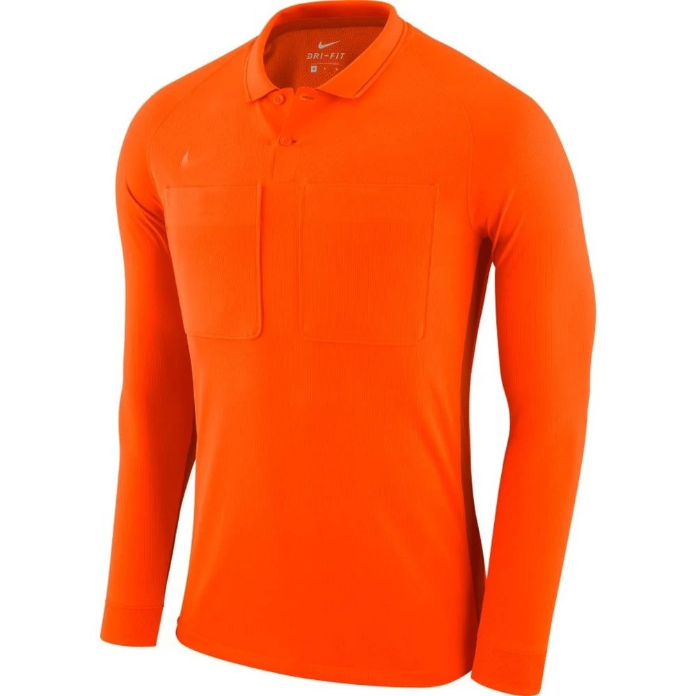 Nike Herren Fußball Dry Langarm Referee Trikot. Mit dem Nike Dry Langarm-Referee-Trikot für Herren beginnen Sie das Spiel auf bequeme Art. Schweißableitendes Material hält Sie auf dem Spielfeld trocken, während zwei sichere Brusttaschen mit Riemenverschluss dem Design Funktionalität verleihen. Das Nike Dry-Material leitet Schweiß von der Haut ab, um eine schnellere Verdunstung sicherzustellen. Dadurch profitieren Sie von einem trockenen, bequemen Tragegefühl und können konzentriert bleiben. Zwei große Brusttaschen für eine sichere Aufbewahrung mit Riemenverschluss an der Innenseite. Dank der Raglanärmel gibt es keine störenden Schulternähte mehr, dafür eine optimierte Bewegungsfreiheit. Die Farbe am Kragen sorgt für einen dezenten Kontrast. Material: 100% Polyester. Farbe: orange.